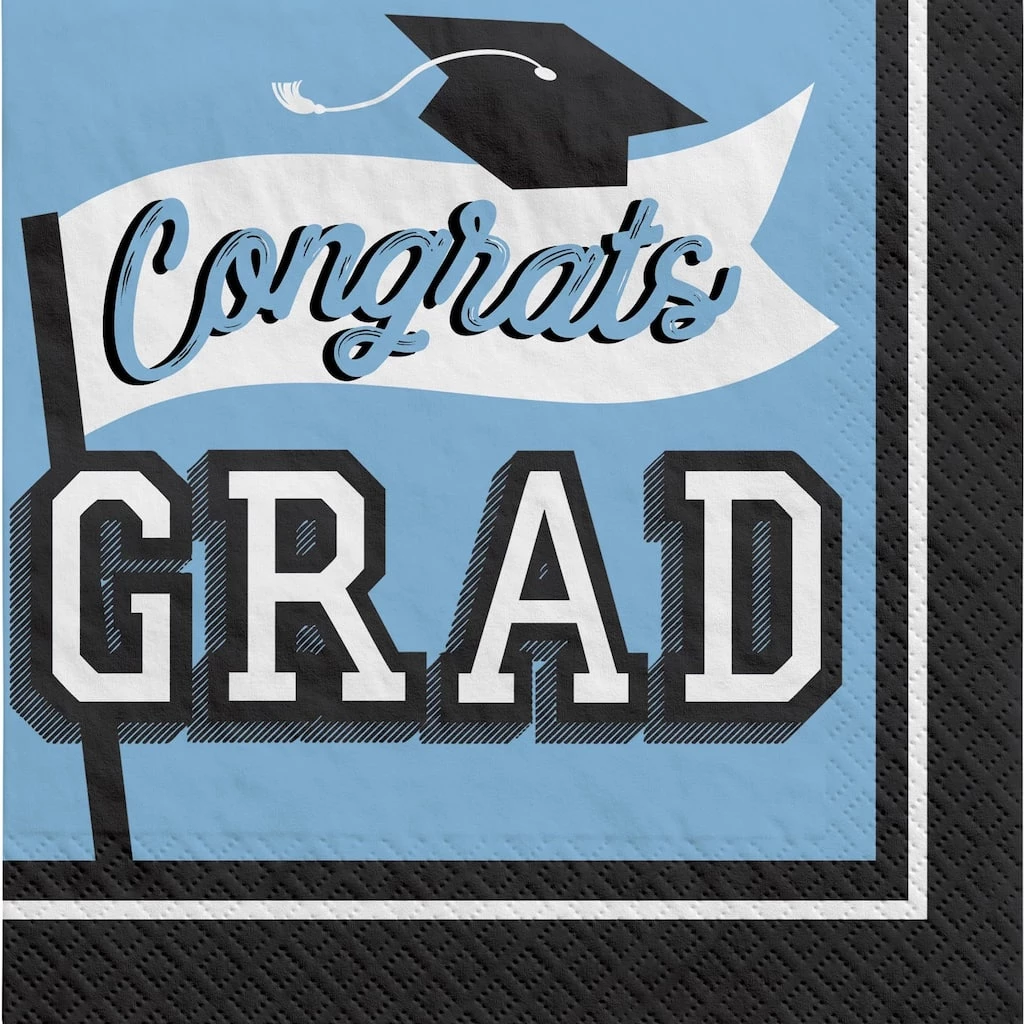 Congratulations graduate! Have a party full of your family and friends, but make sure to keep clean with these napkins featuring a fun graduation print. They are perfect for matching to your school colors.