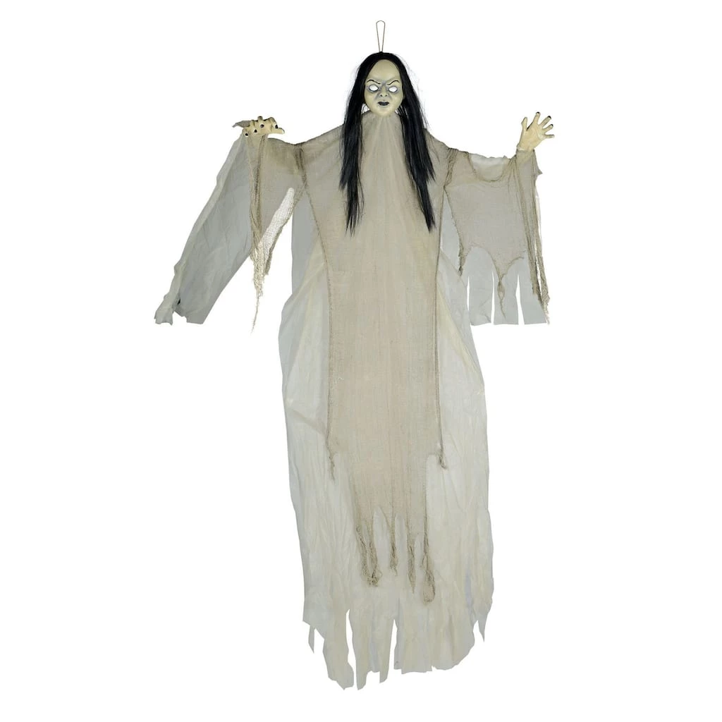 This giant prop is so terrifying that it might keep trick-or-treaters from coming to your door! It features a white drape and plastic mask. With the included loop you can hang this decoration anywhere, indoors or out.