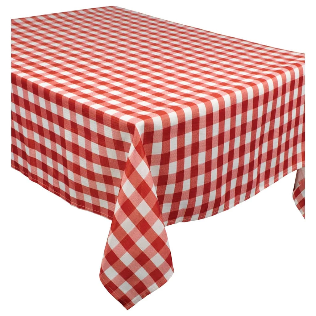 Prepare for the picnic with this BBQ red check fabric table cover. It features an all-over print of red and white checks. This is perfect for picnics, barbecues, or other get togethers.