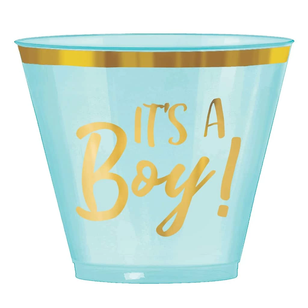 Hot stamped, blue 9 oz. tumblers with gold foil accents feature the caption: it’s a boy. Cups contain foil accents so they are not microwave safe.