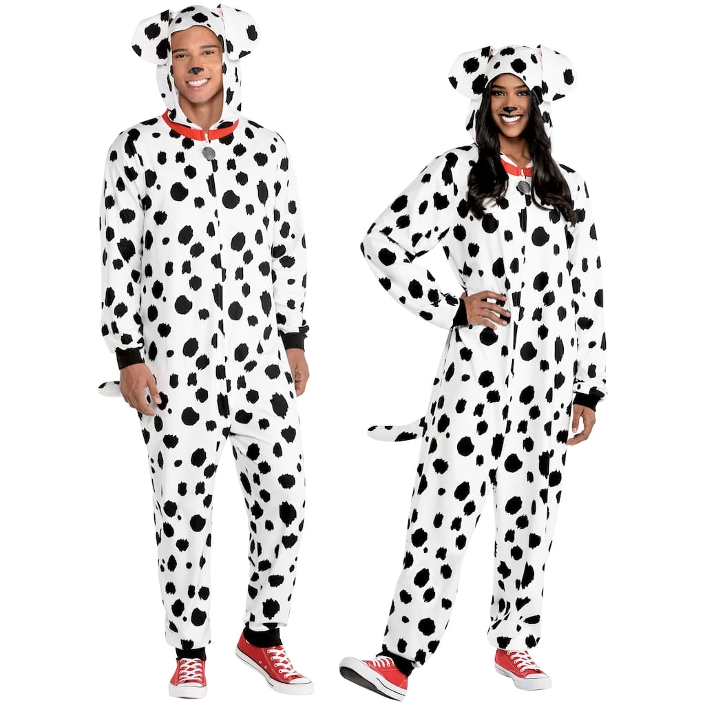 Costumes don’t have to be complicated to be stylish! The cool and comfortable Dalmatian Zipster Costume features a black and white spotted zip up one piece with dog head hood, attached fuzzy ears, and collar. The elastic wrist and ankle bands make this costume easy and comfortable to wear.