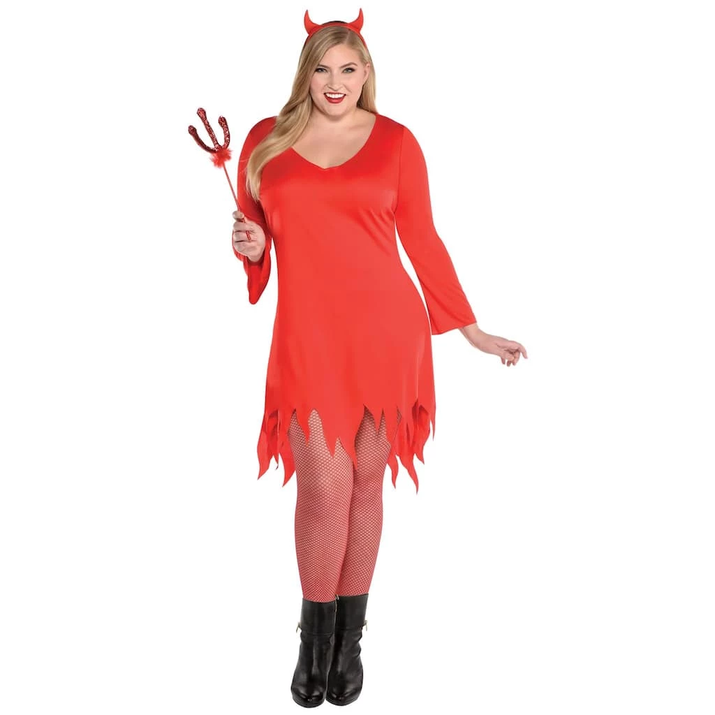 - Includes dress and devil horn headband