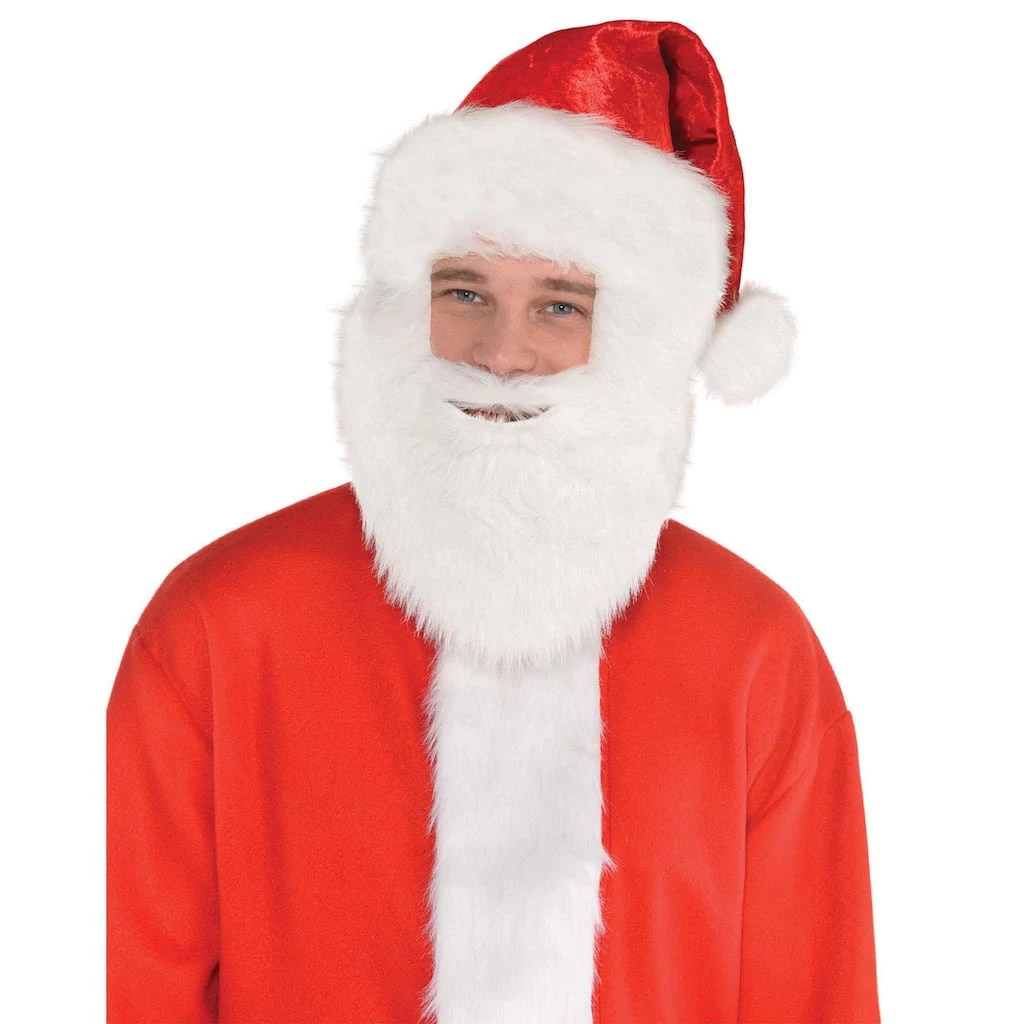 Make the season silly with our Santa Hat and Beard set. Skip gross and painful glues or itchy, uncomfortable wigs and instead get the Santa look by wearing just one comfortable hat! This silly Christmas accessory combines a plush red fabric Santa hat with a fuzzy white attached Santa beard.