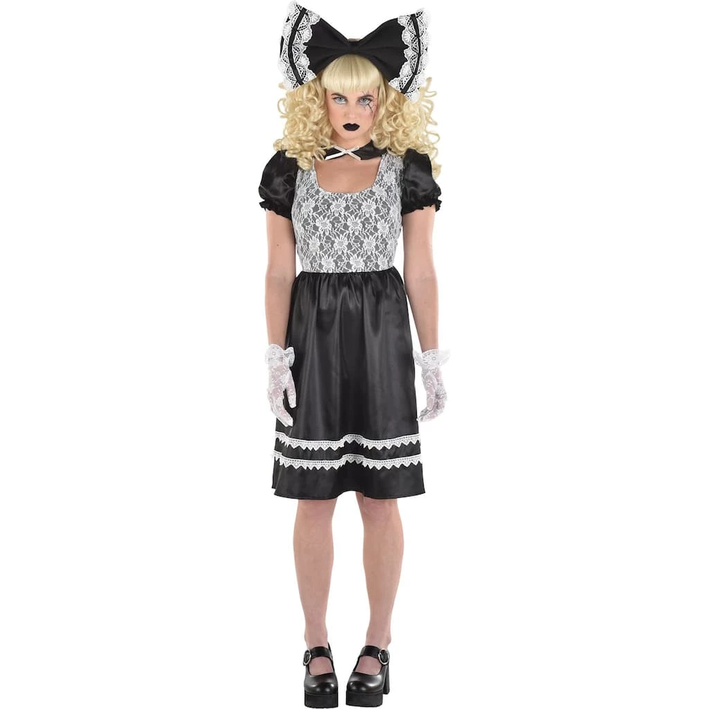You won’t want to play with dolls again when you see this Dark Creepy Doll Dress. This terrifying costume features a black and white dress, puffy sleeves, a collar, white lacy gloves and a large oversized bow. Shoes, makeup, and wig not included.