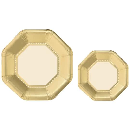 Add some color to any special occasion with this Octagonal Premium Party Plates Set. This set includes two sizes of premium paper octagonal plates with colored bordered. With the look of fine dining these plates are just what you need to elevate any event.Β