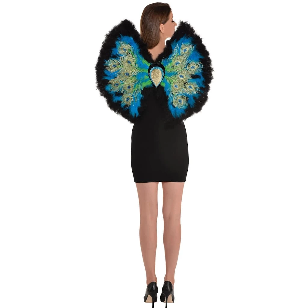 Strut your stuff with these fashion peacock style wings. These colorful wings are perfect for making a dramatic entrance or showing off your wild side. These wings will make an eye catching addition to any costume and are just what you need to push your costume over the top.