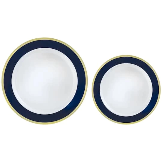 Add some color to any special occasion with this round hot stamped premium plastic bordered plates multipack. This set includes two sizes of premium plastic with colored borders. With the look of fine dining, these plates are just what you need to elevate any event.Β