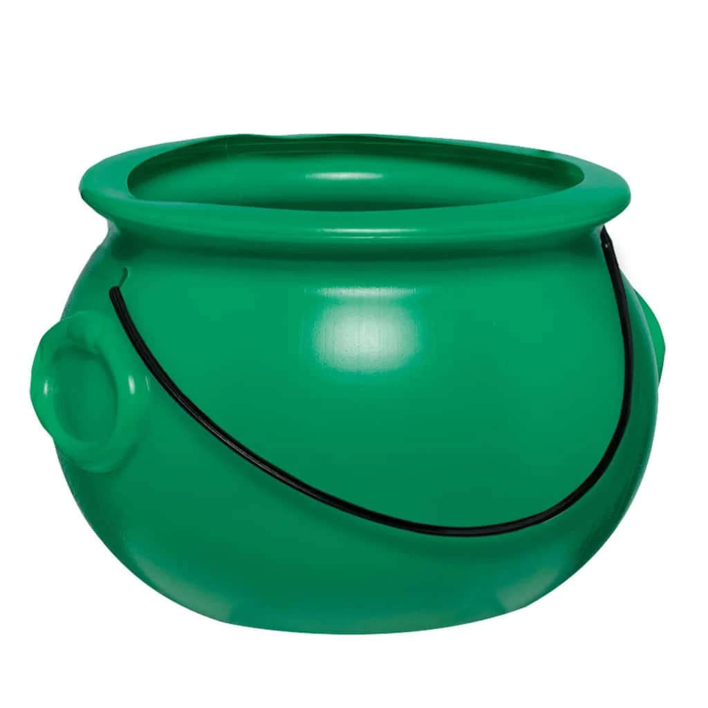Fill up our plastic Pot of Gold Green Cauldron for a St. Patrick’s Day as special as the luck of the Irish. Calling all leprechauns! Fill up our Pot of Gold Green Cauldron with gold coins, sweets, and toys to create fun centerpieces or party favors guests will love to take home. This decorative serving container is made of a sturdy green plastic with a black plastic handle for easy carrying. Reuse this cauldron at your next celebration!