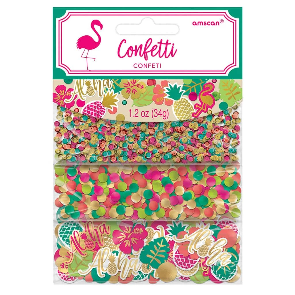 Decorate your table with this Aloha Value Pack Confetti! With three unique packs filled with sequins, polka dots, tropical flowers, pineapples, and flamingos, this confetti is perfect for displaying over tables or putting in envelopes for a sparkly surprise.
